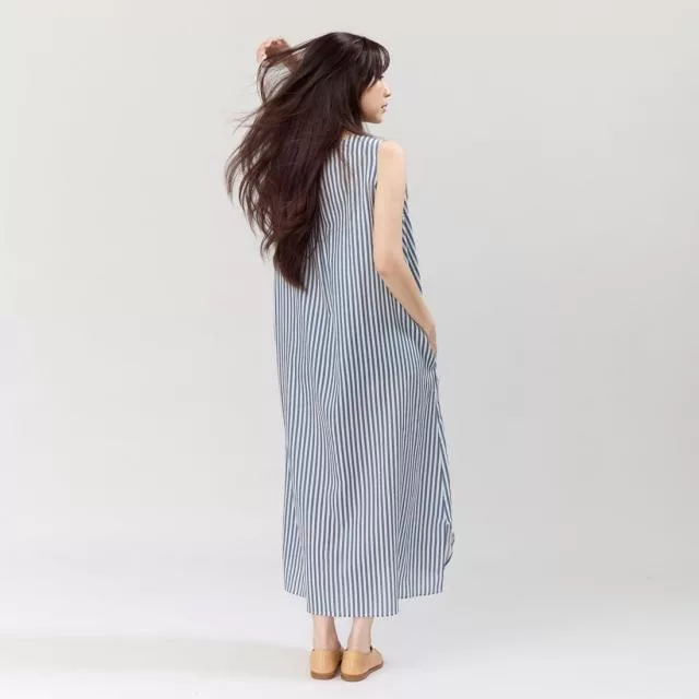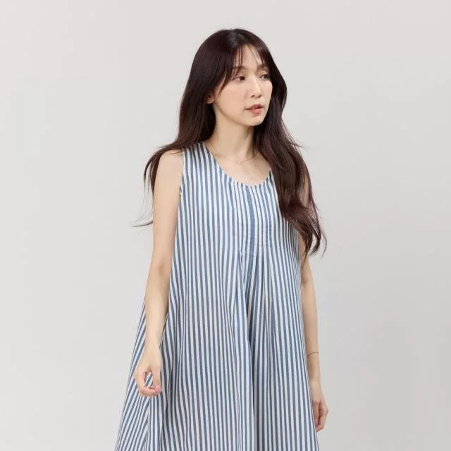 【A.Cheter】寬肩藝術側車線造型設計寬鬆背心洋裝102567L藍