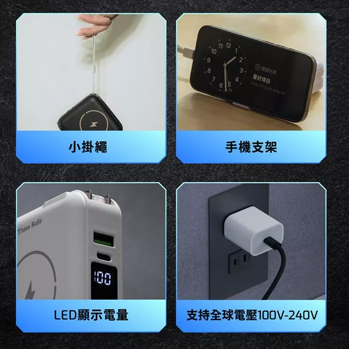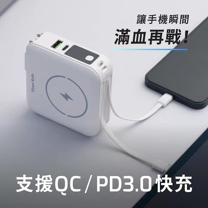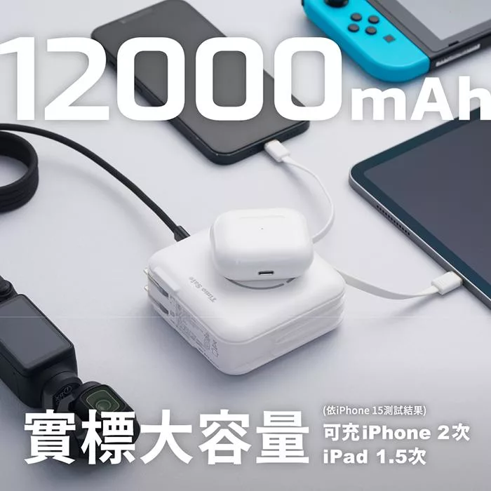 【ENABLE】台灣製造 15月保固 Traveler+ 10000mAh 20W PD/QC 自帶插頭雙向快充行動電源- 午夜藍