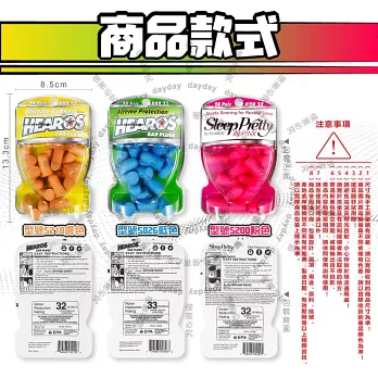 -適用一般耳道,降噪規格NRR33;粉/-小耳道用,降噪規格NRR32