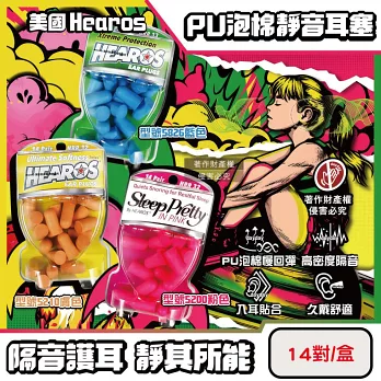 美國Hearos-PU泡棉柔軟慢回彈高密度透氣舒適護聽力靜音耳塞14對/盒(NRR32~33dB降噪隔音,適用一般/小耳道安靜專注,美國ANSI認證防擾眠) 型號5826藍色
