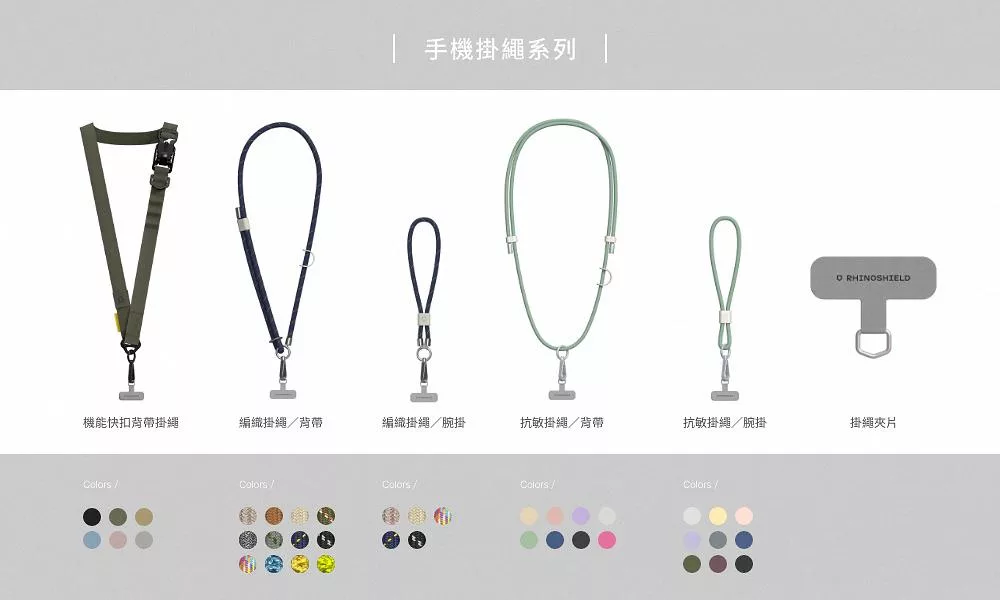 A:犀牛盾編織手腕掛繩、抗敏手腕掛繩都能搭配市面上絕大部分掛繩夾片,不過因市面上的廠牌眾多、各廠牌設計及厚度不同,仍需以實際安裝結果為主。