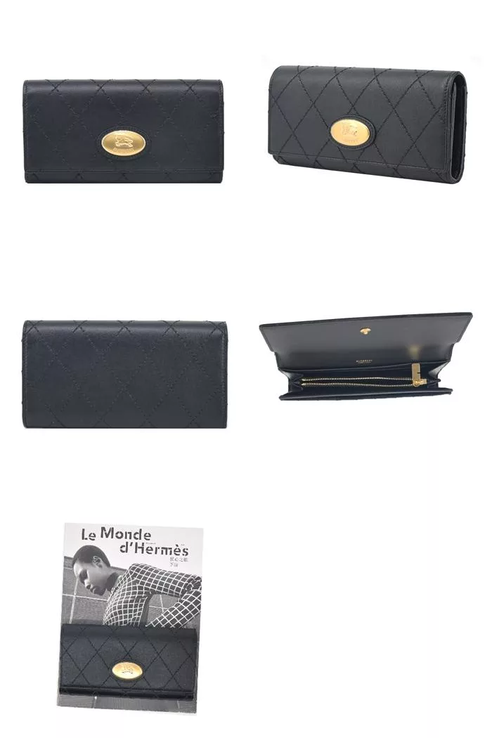 BURBERRY Vintage 格紋對開多卡長夾 (炭灰色)