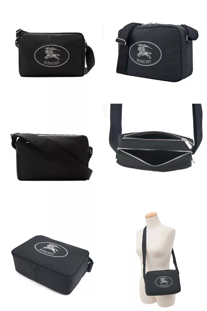 BURBERRY Orkney戰馬LOGO尼龍斜背包 黑色