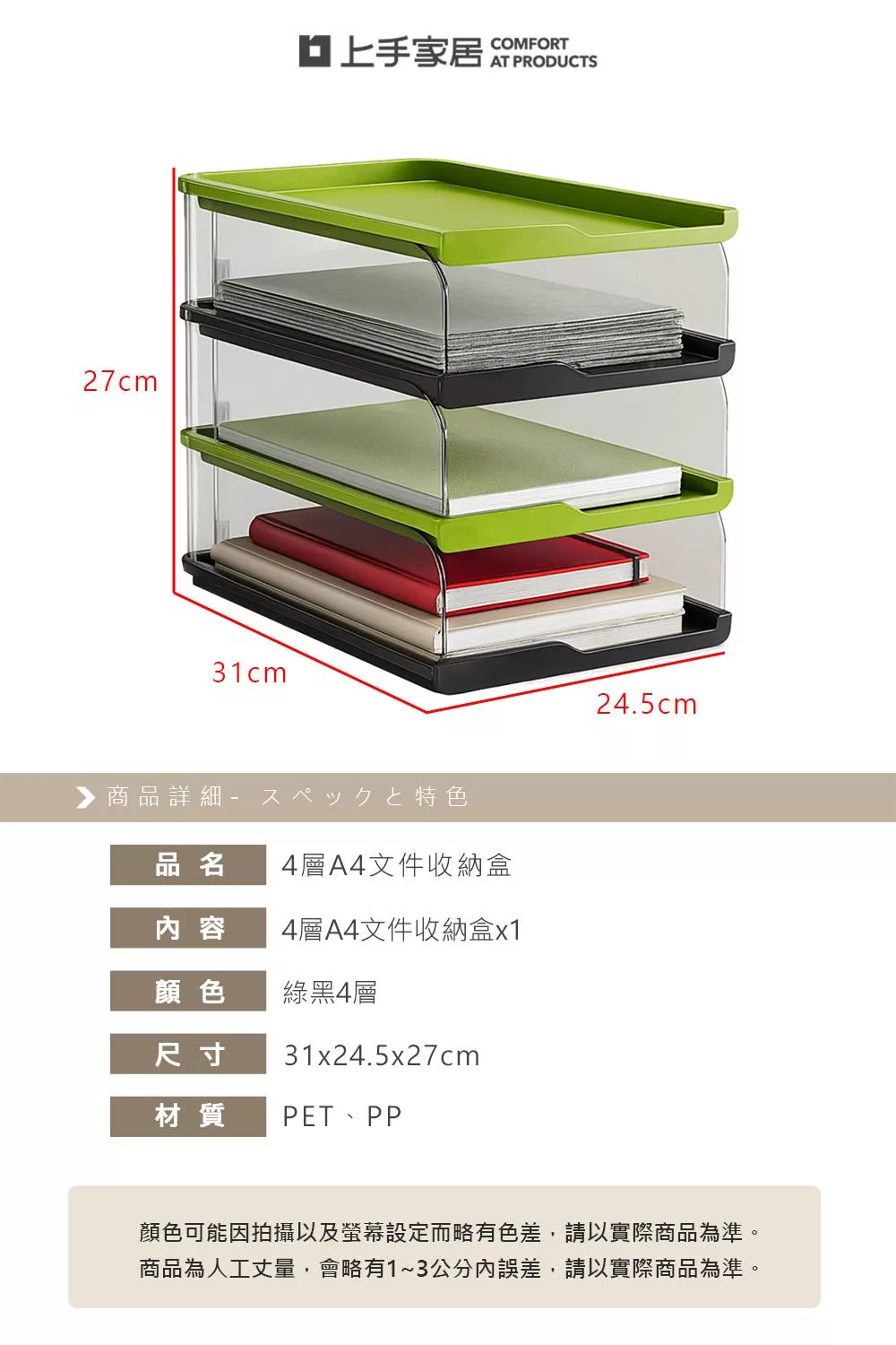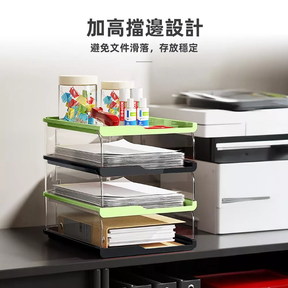 這款 4 層 A4 文件收納盒,採用透明分層設計,內容物一目了然,想找哪份文件伸手就拿。每層高度 8.5cm,可放置多種規格文件與書冊,辦公、居家學習都能快速分類,讓桌面恢復清爽整齊。