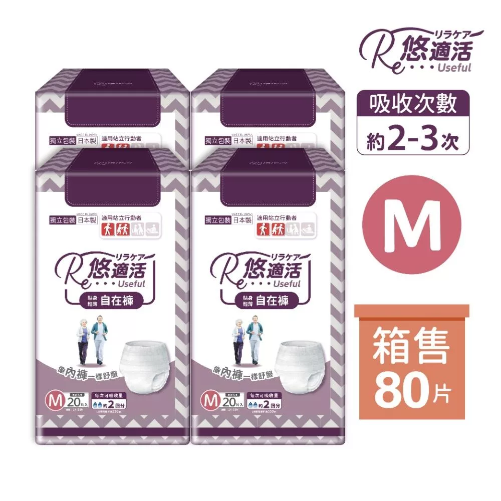 【悠適活】貼身輕薄自在褲2回吸收300cc(M/20片/包*4包/共80片/箱)