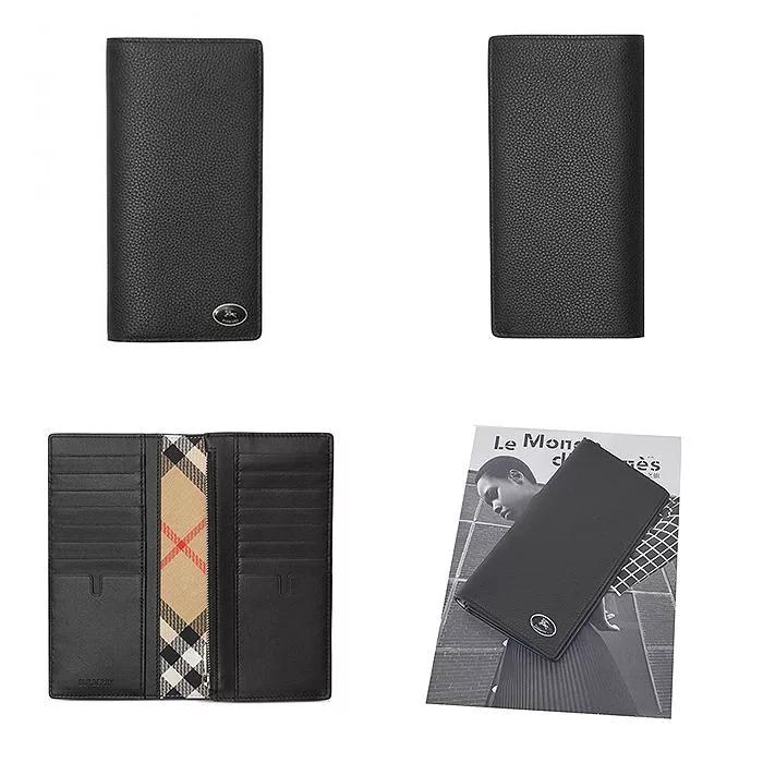 BURBERRY 銀色Logo 紋理牛皮對開8卡短夾 (黑色)