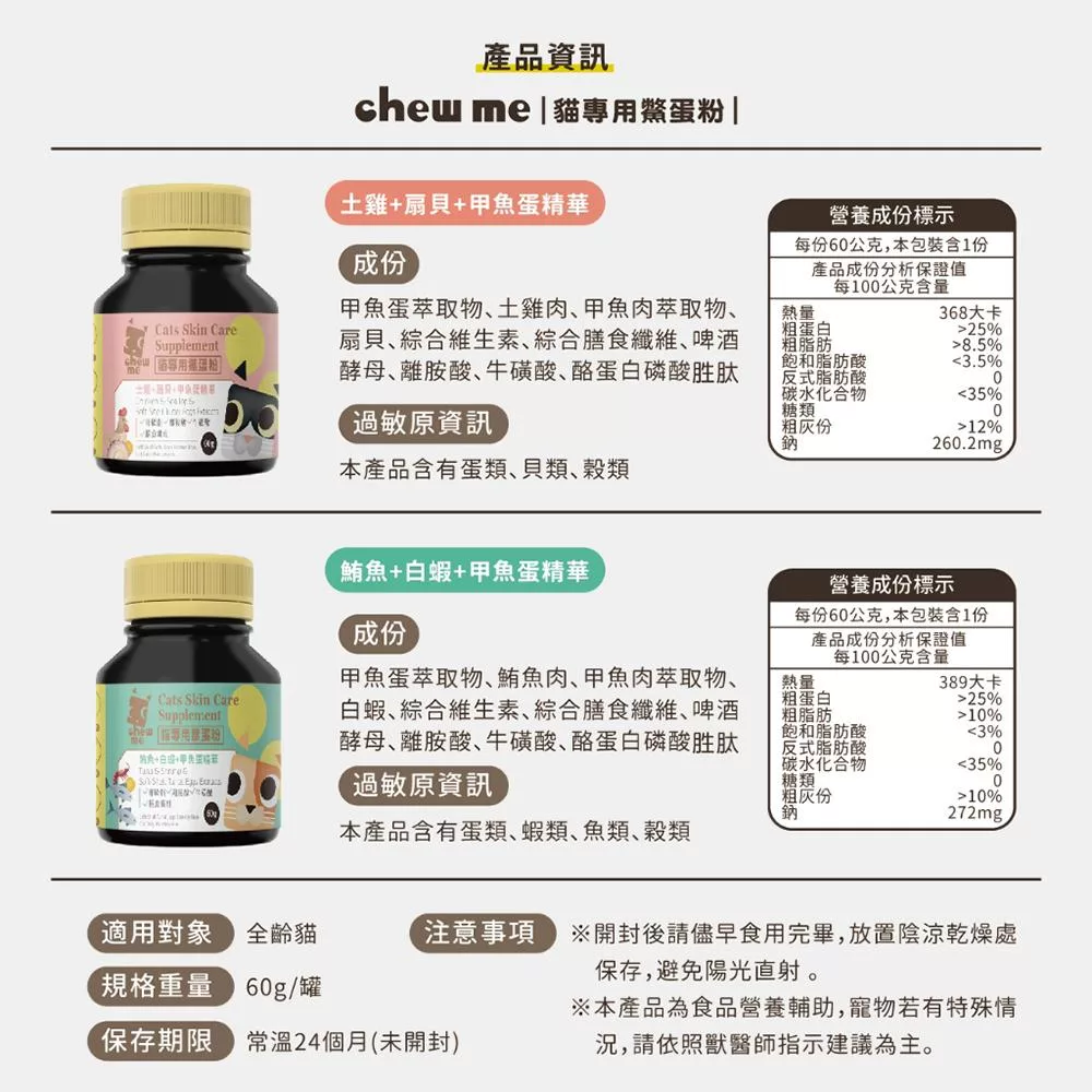 【Chew Me】貓專用鱉蛋爆毛粉60Gx1罐入
