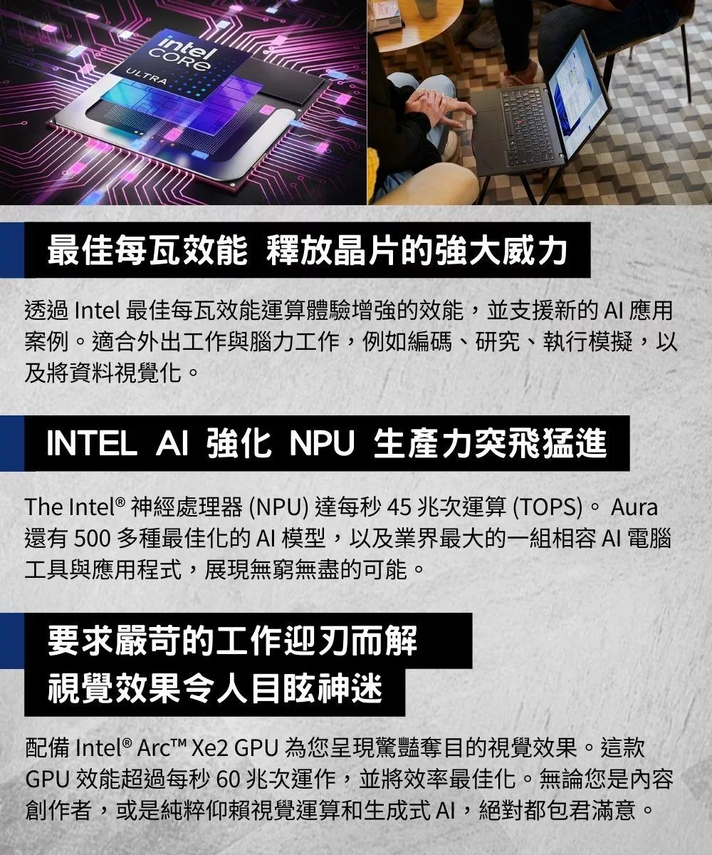 顯示卡:Integrated Intel® Arc™ Graphics 130V