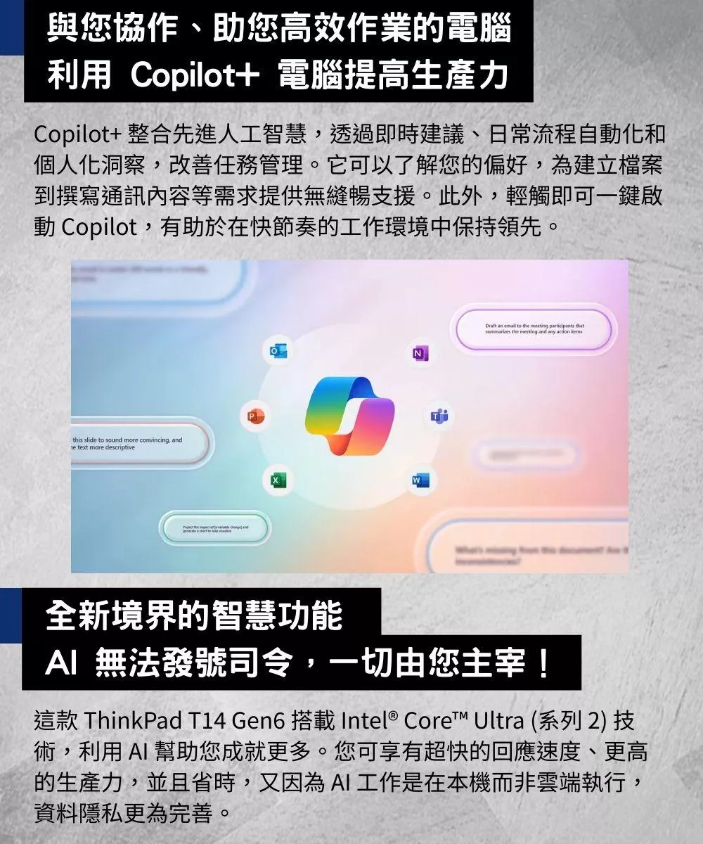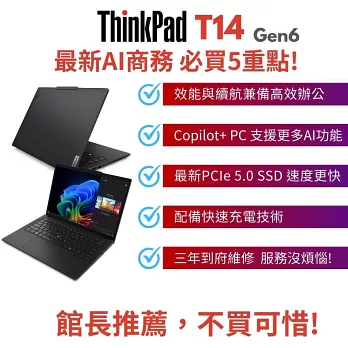 Lenovo ThinkPad T14 Gen 6 14吋 AI商務筆電 (Ultra 7 255H/32G/1TB/W11P/3年保)