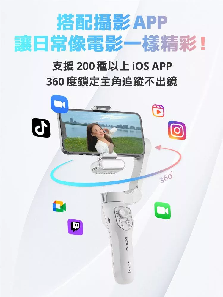 ・除iPhone原生相機,亦適用200種以上iOS App,例如:IG、TikTok...等,隨手拍零失敗
