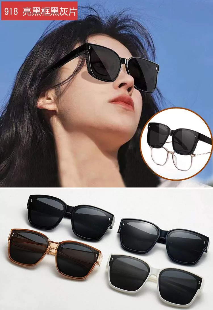 【SUNS】時尚韓版大框偏光墨鏡/套鏡 近視用外掛式墨鏡 男女適用 抗UV400 防眩光 砂黑框白水銀