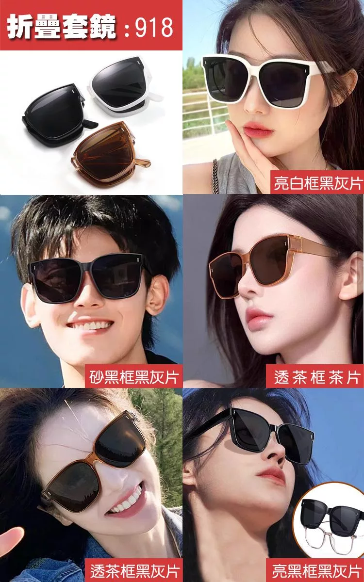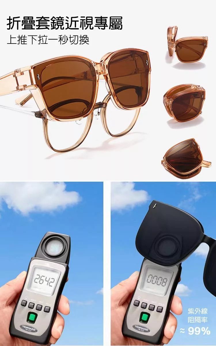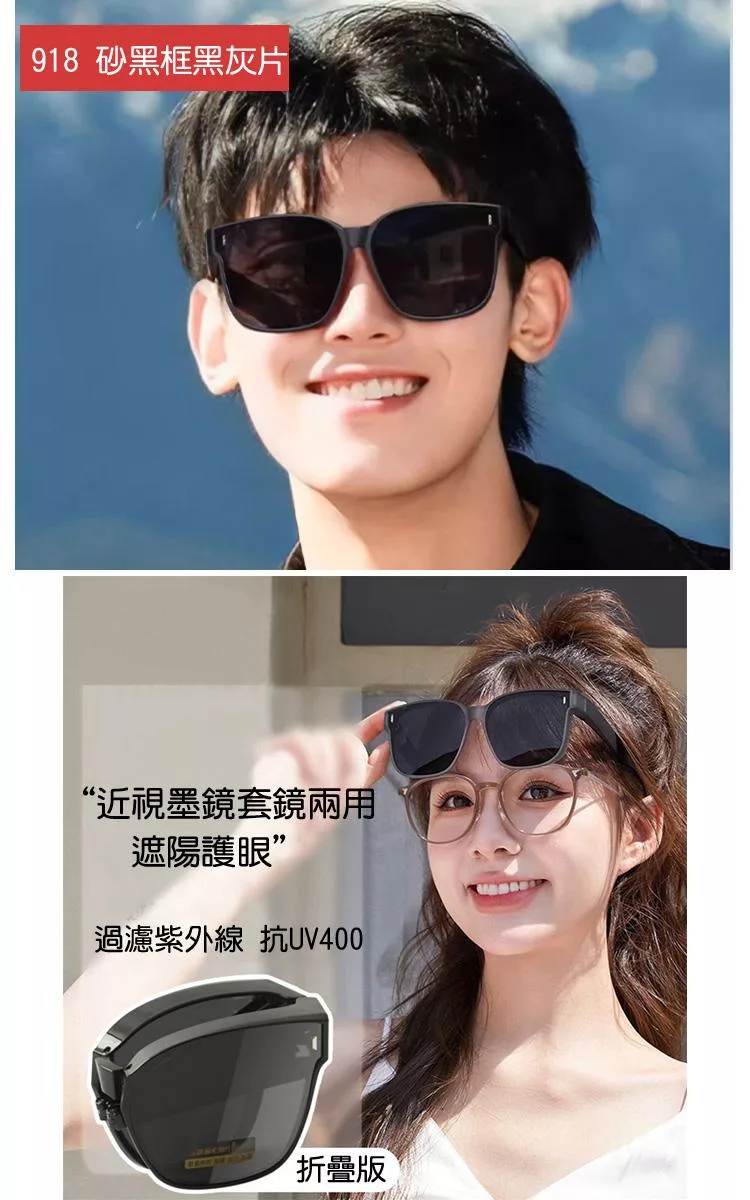 【SUNS】近視用外掛式折疊墨鏡 時尚大框偏光折疊套鏡 抗UV400 包覆式太陽眼鏡 抗UV400 防眩光 砂黑框黑灰片