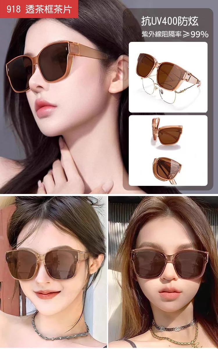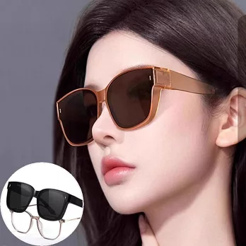 【SUNS】時尚韓版ins大框偏光墨鏡(可套式) 超輕量無感太陽眼鏡 男女適用 防眩光 抗UV400 茶色