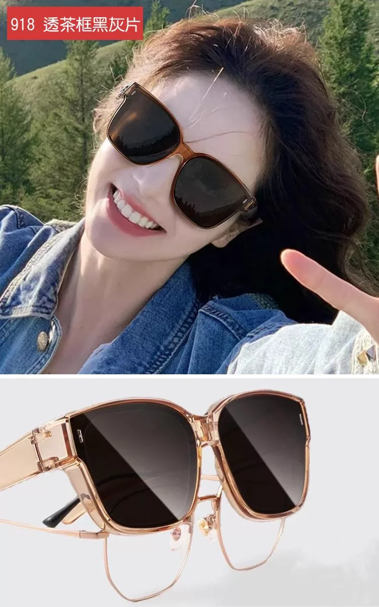 【SUNS】外掛全罩式 上翻式偏光墨鏡 方框包覆式眼鏡(可套鏡) 抗UV400 防眩光 黑框黑框