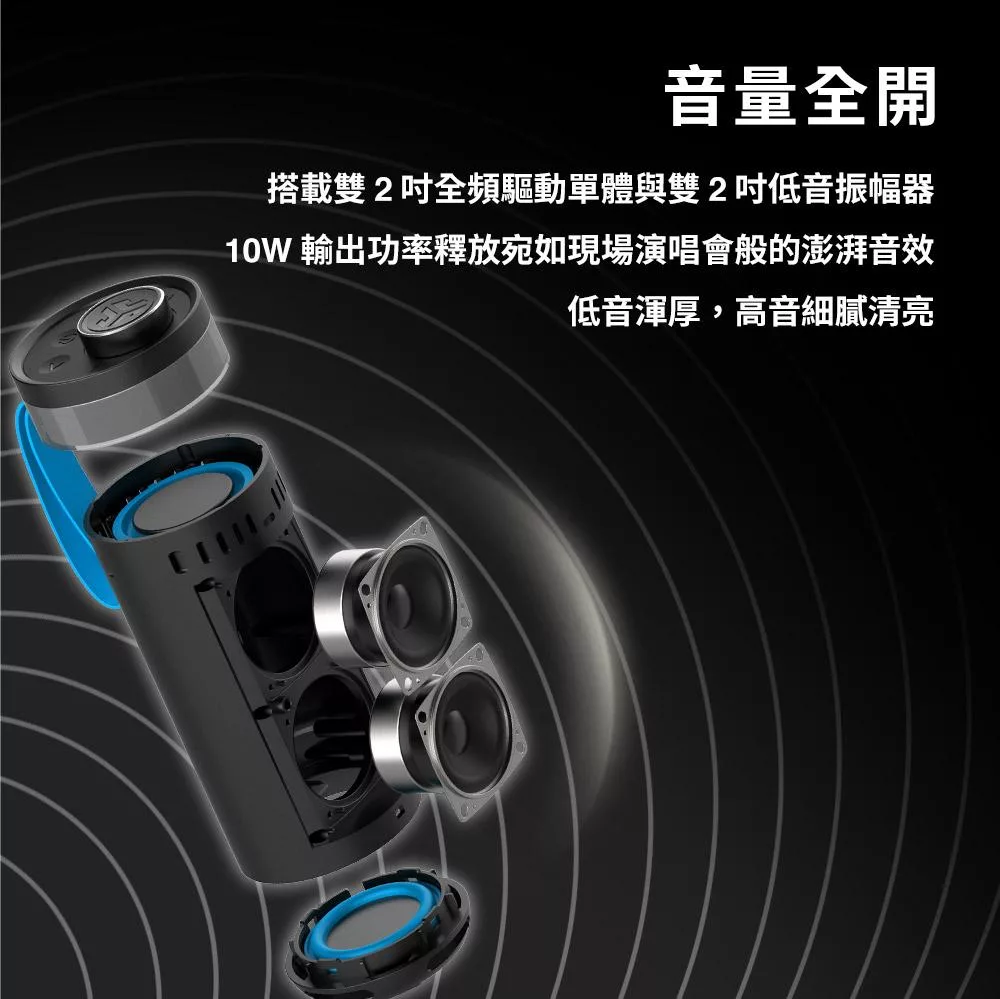 aibo 360度環繞炫彩 藍牙喇叭 (TWS無線串聯) 黑色
