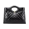 CHANEL 經典雙C LOGO 菱格紋亮面小羊皮購物包 黑色