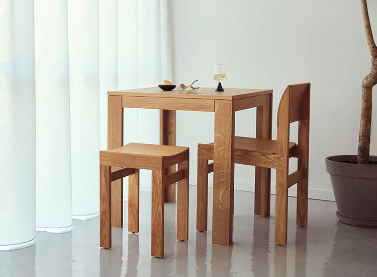 《Element Table 元素方桌》是由丹麥設計團隊 Herman Studio 操刀設計,將粗獷主義(Brutalism)與極簡主義加以融合後呈現,於設計初期發想就決定收斂桌子的外觀,僅運用俐落筆直的線條刻劃桌身結構,巧妙運用恰到好處的點線面比例,製造出絕妙的的視覺比例,讓桌子脫離沉重的刻板印象,反而賦予視覺輕盈之感,卻蘊含著堅不可摧的力量強度。