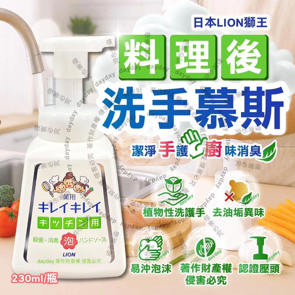 日本LION獅王-植物性除料理後油垢異味洗手慕斯230ml/按壓白瓶-柑橘香(廚房烹飪髒污泡泡洗手,去蔥蒜生鮮腥臭親膚洗手乳,手部香氛護理清潔露)