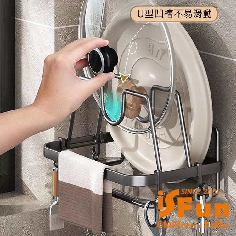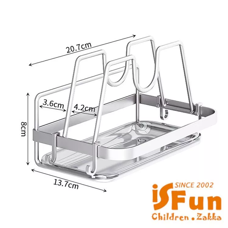 ◆免打洞無痕黏貼架◆適用於鍋蓋和砧板◆也可掛放多種物品◆隨意黏貼在牆壁上◆更多其他商品請搜尋:iSFun