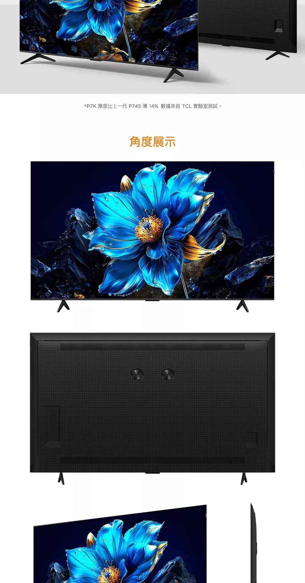 【活動優惠】TCL 65吋 65P7K QLED 量子智能連網液晶顯示器 P7K Google TV 含基本安裝+舊機回收