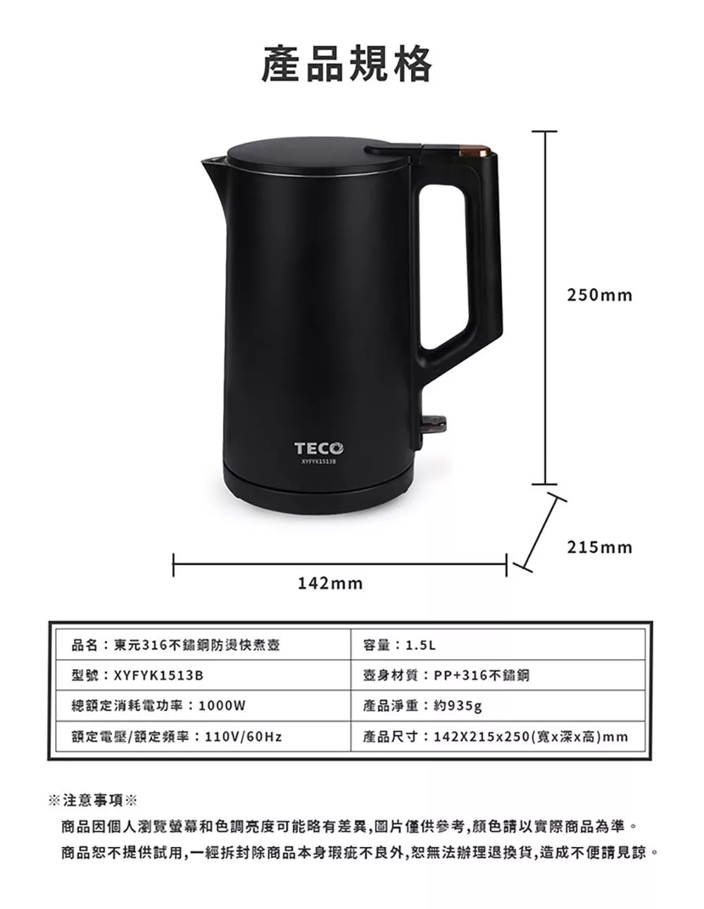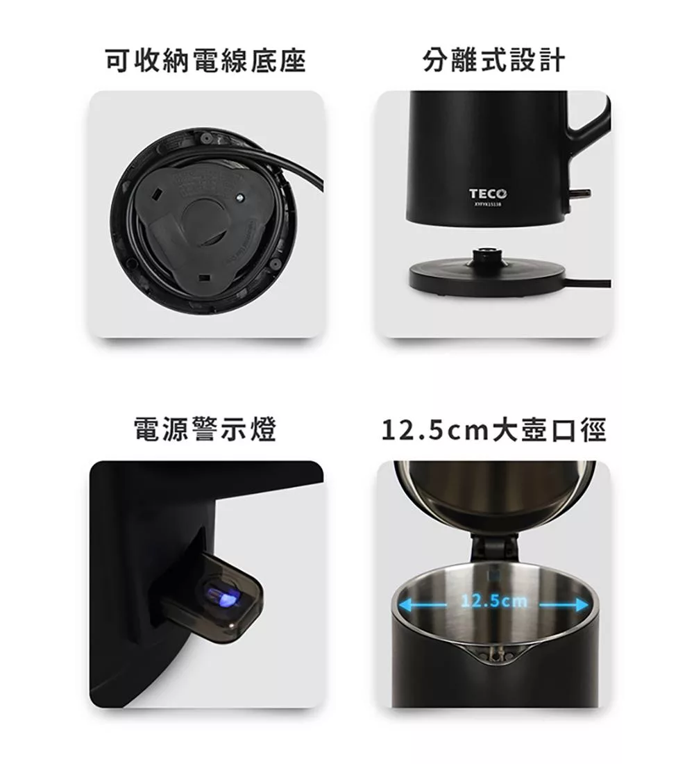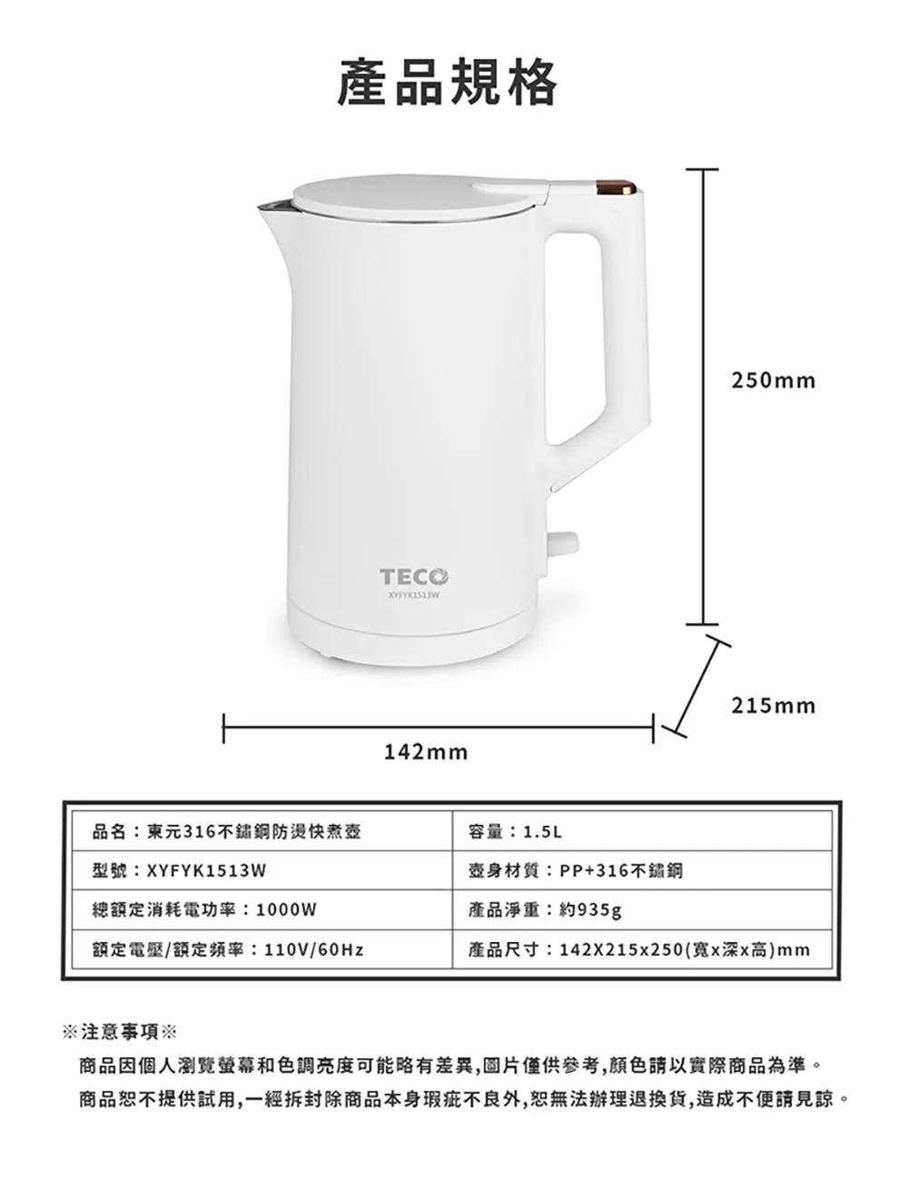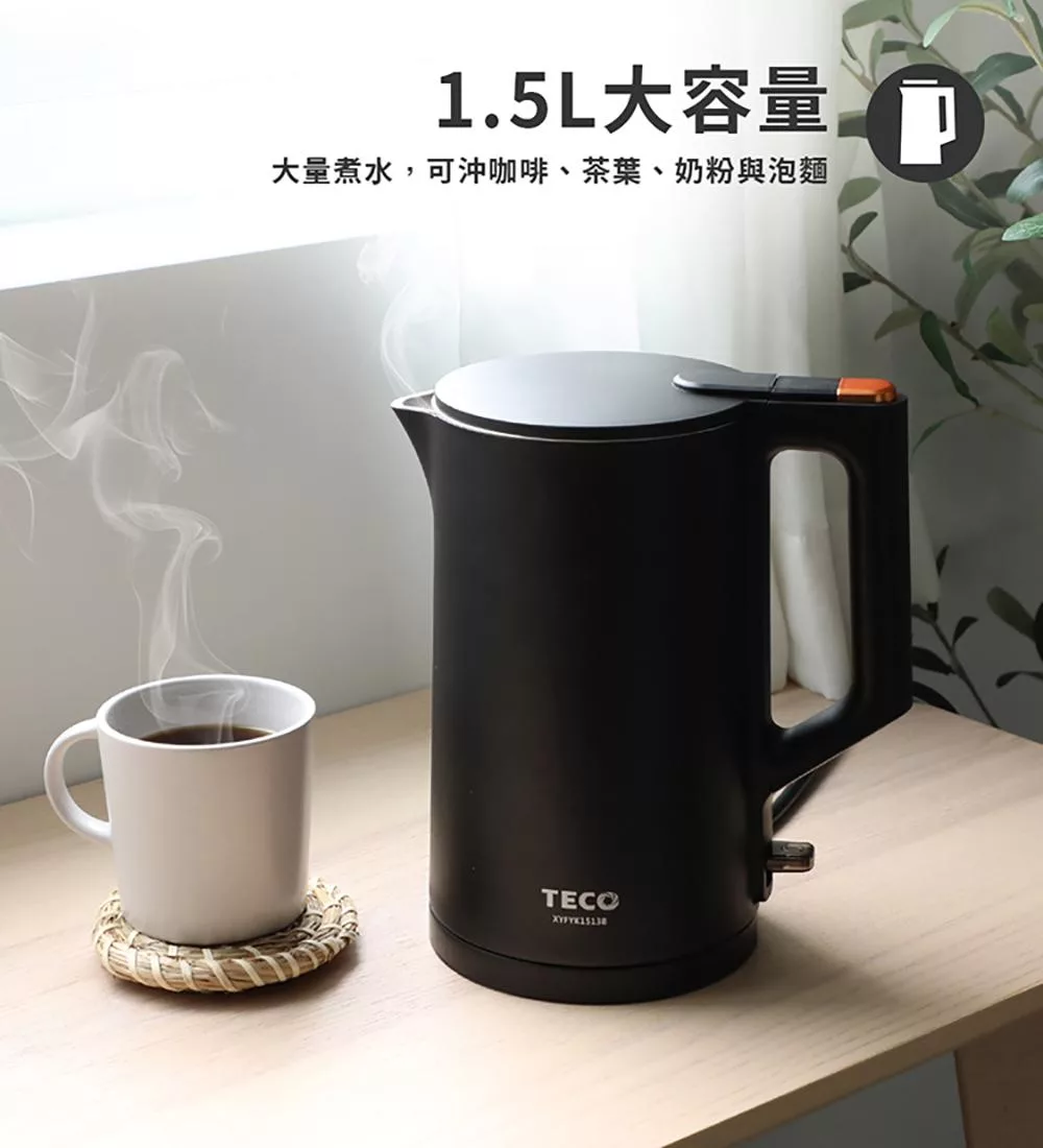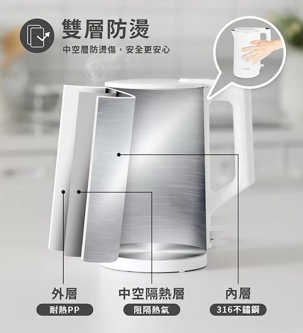 【東元】316不鏽鋼雙層防燙快煮壺 XYFYK1513B(黑)|XYFYK1513W(白) 白色