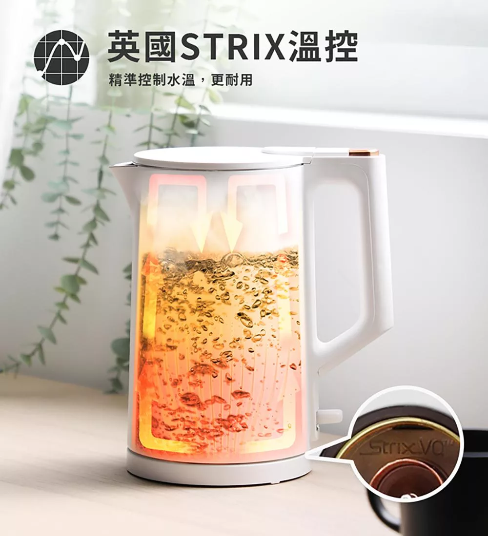 【美國康寧】Snapware SEKA 英式典雅雙層防燙電熱水壺1.8L- 白