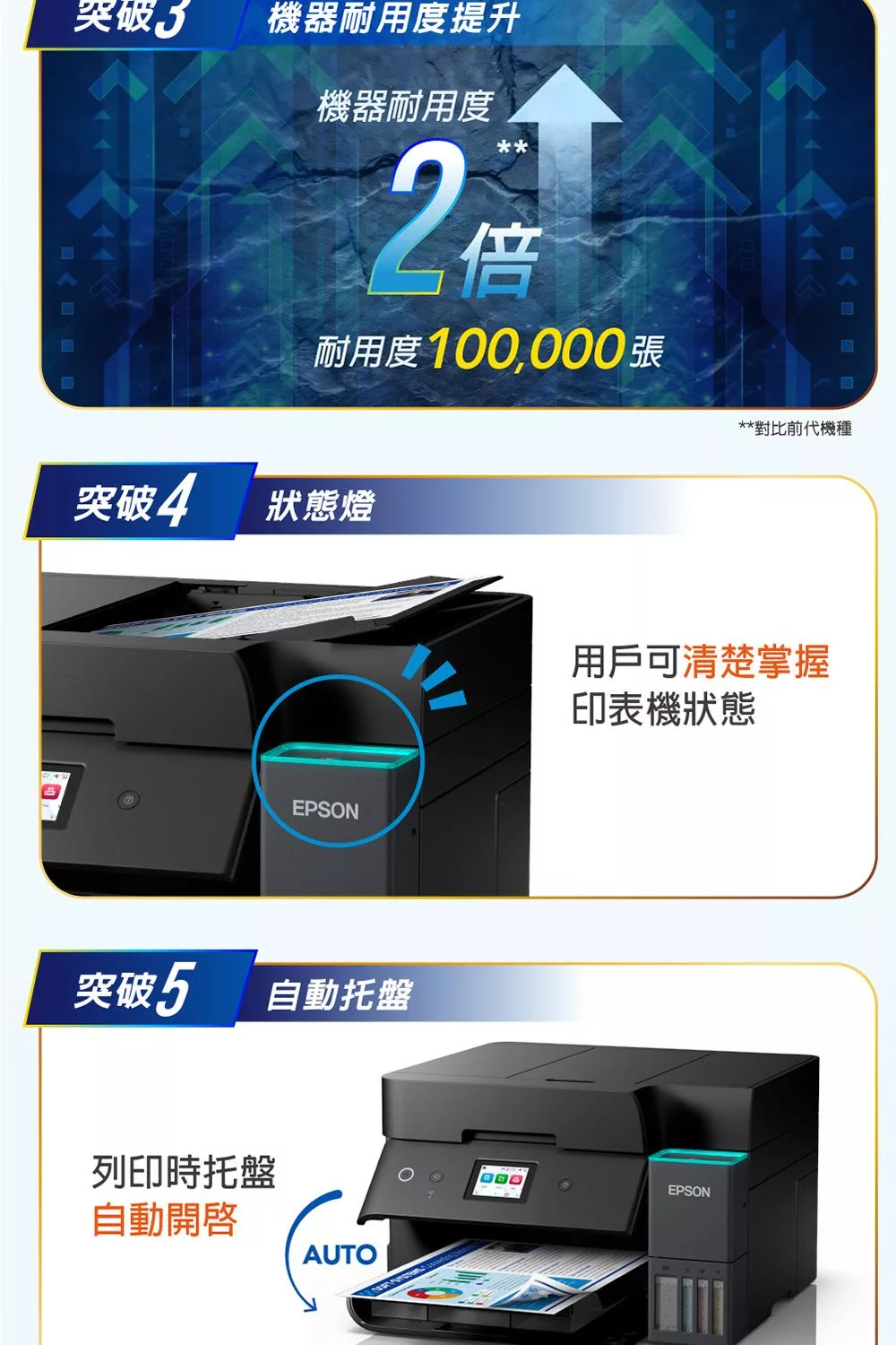 3.加購三組墨水上網登錄送第5年保固+送Epson藍芽手寫標籤機LW-C410(價值$3290)。(最低購機金額15,090元)