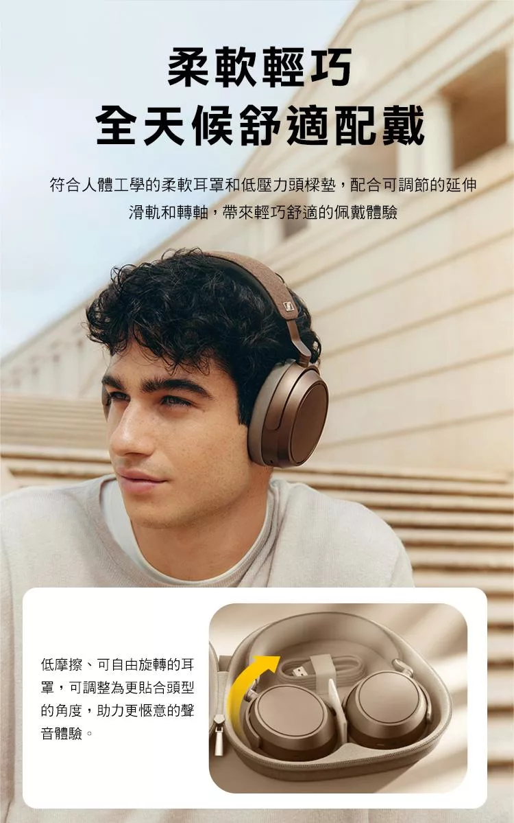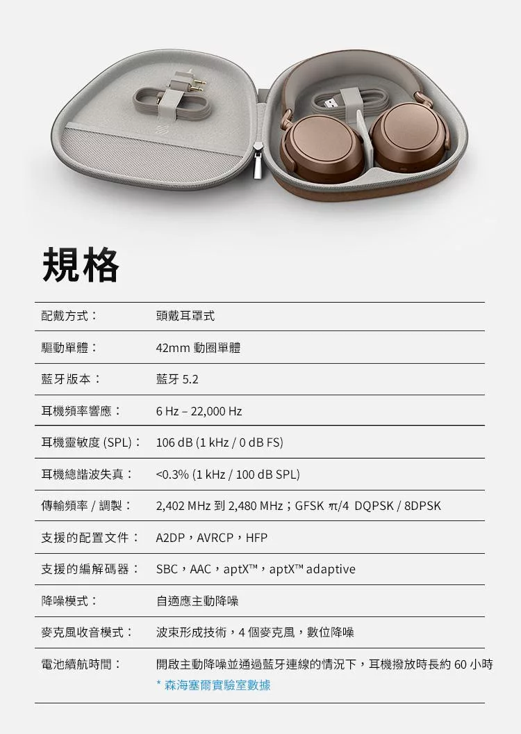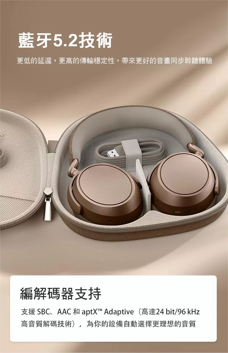 E-books SS69 AI空間音訊360度8D環繞ANC+ENC藍牙6.0頭戴耳機 銀灰