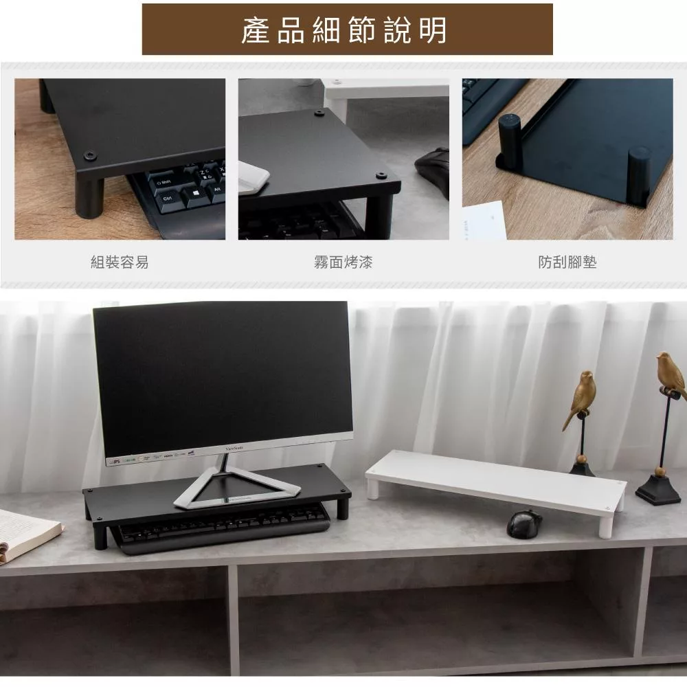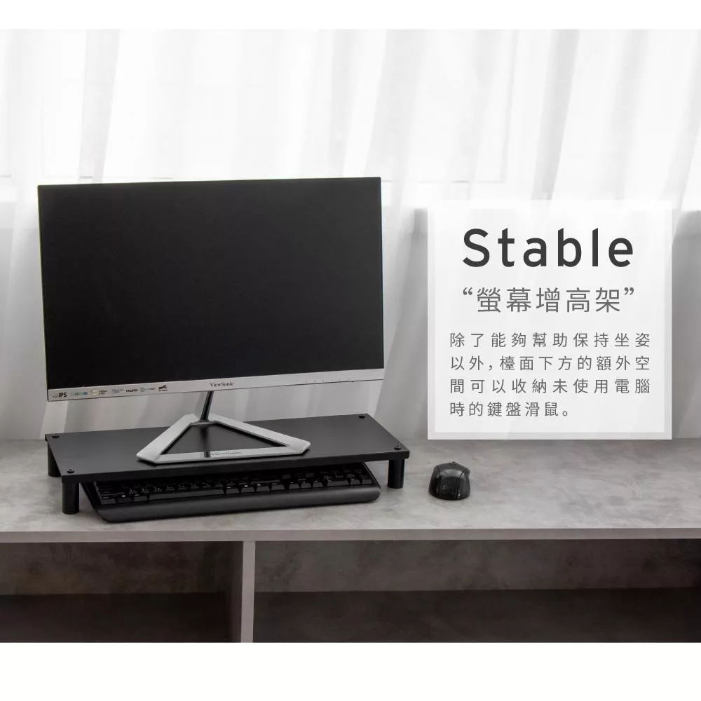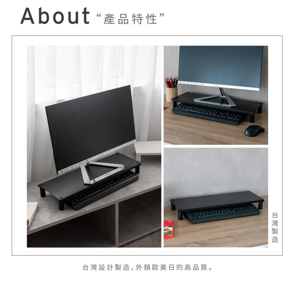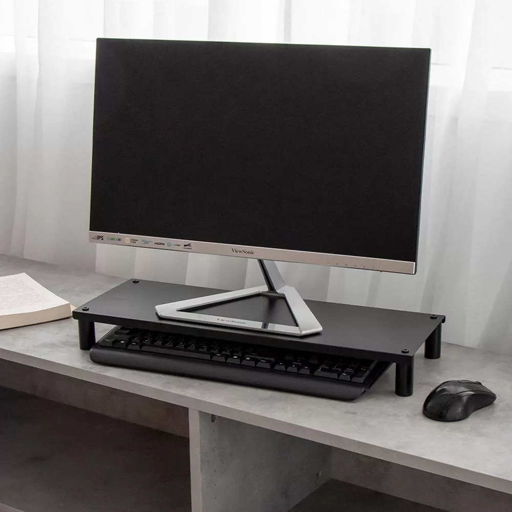 【H&R安室家】省空間桌上螢幕架 鍵盤收納架 OA127 黑色