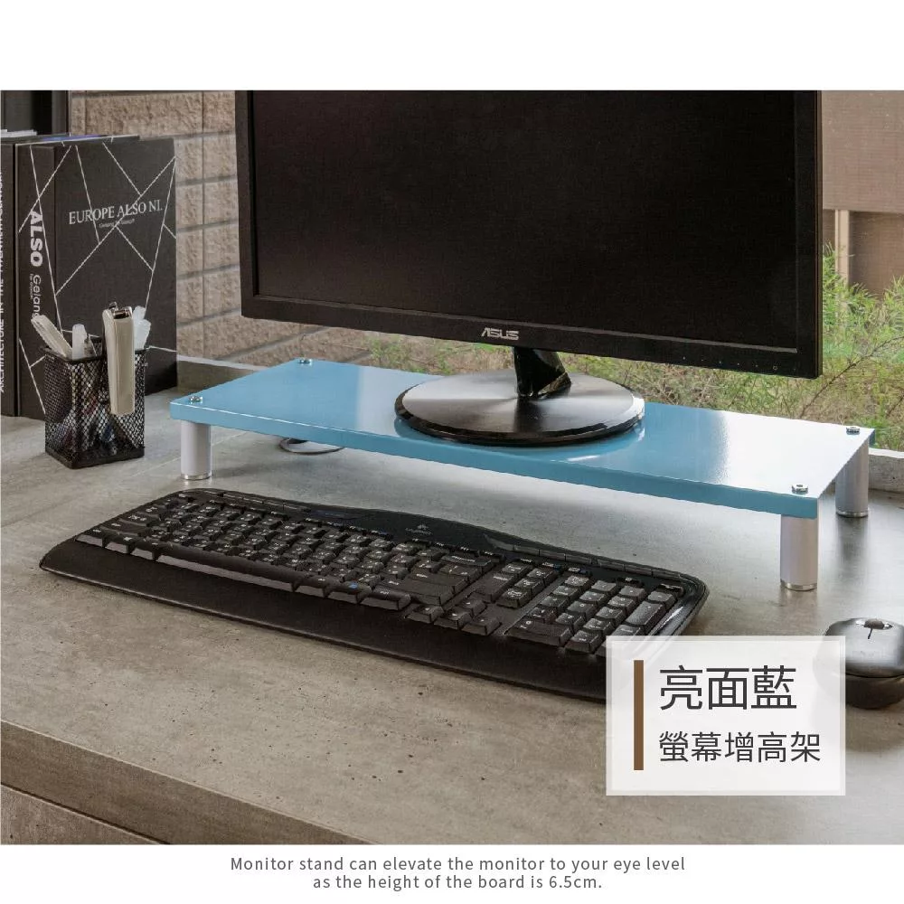 【ikloo】省空間桌上鍵盤架螢幕架-天空藍 天空藍
