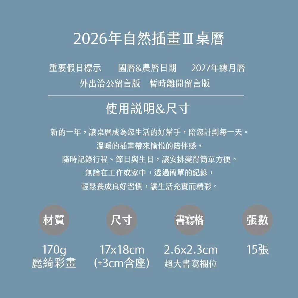 2026年,讓這本桌曆成為您每日的溫柔陪伴。