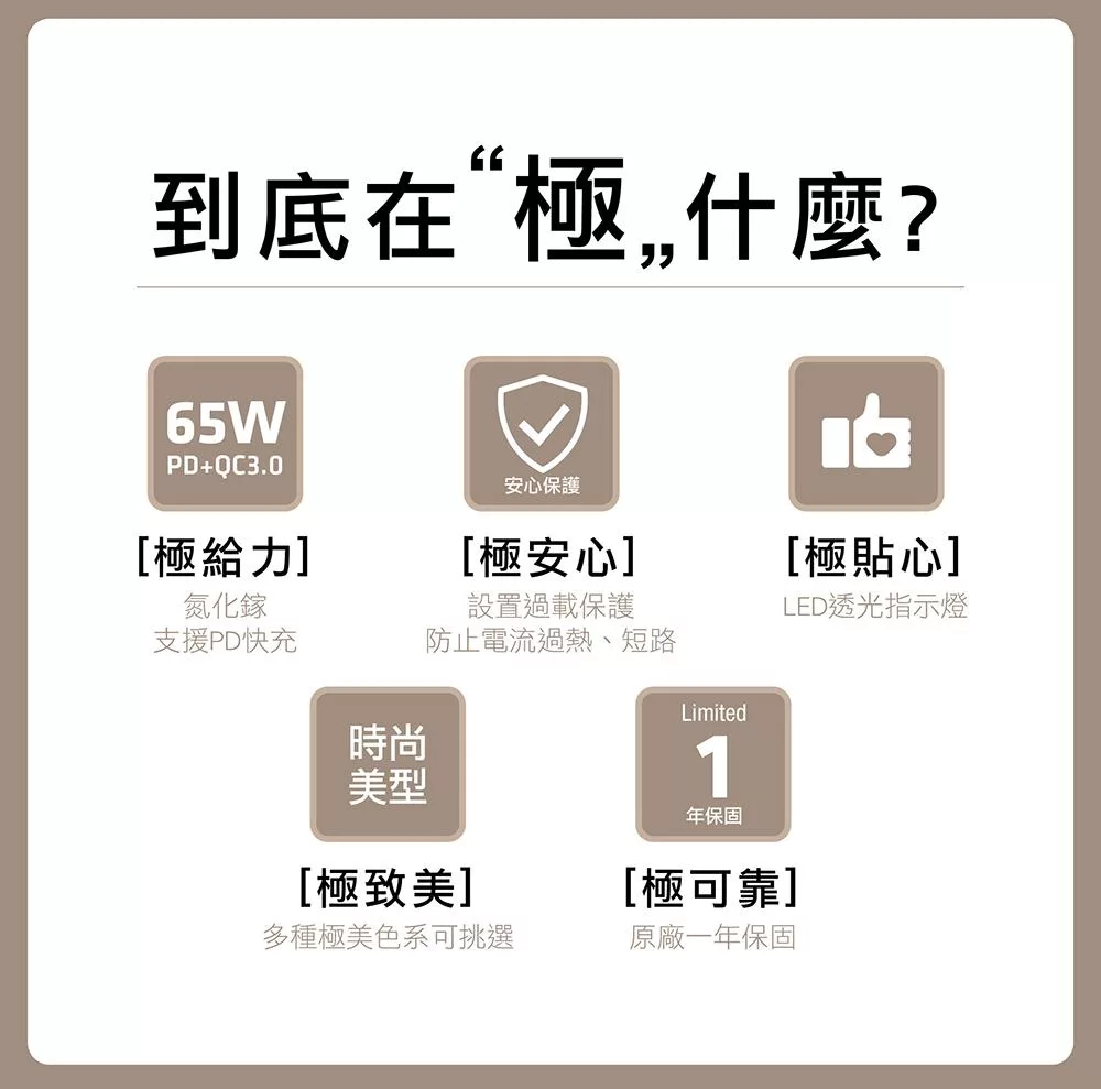 +886 [極野家] 5開5插1USB+2Type C PD 65W 快充延長線1.8米 V2 HPS2556 (3色可選) 奶茶棕