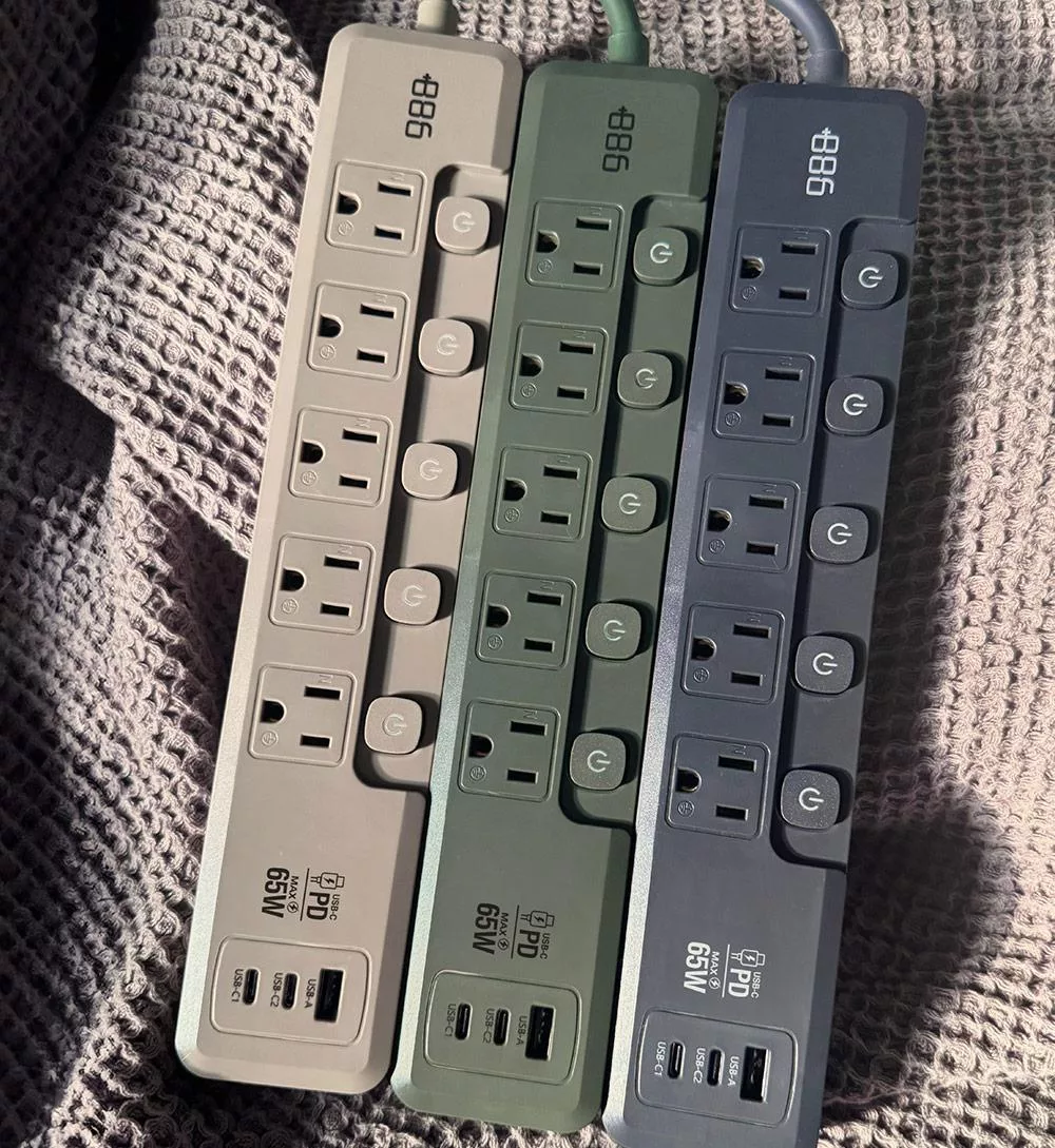 +886 [極野家] 5開5插1USB+2Type C PD 65W 快充延長線1.8米 V2 HPS2556 (3色可選) 軍綠