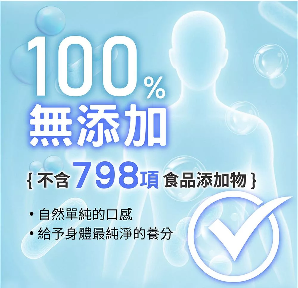 未添加香料、防腐劑、甜味劑等共798項添加物,純淨零負擔