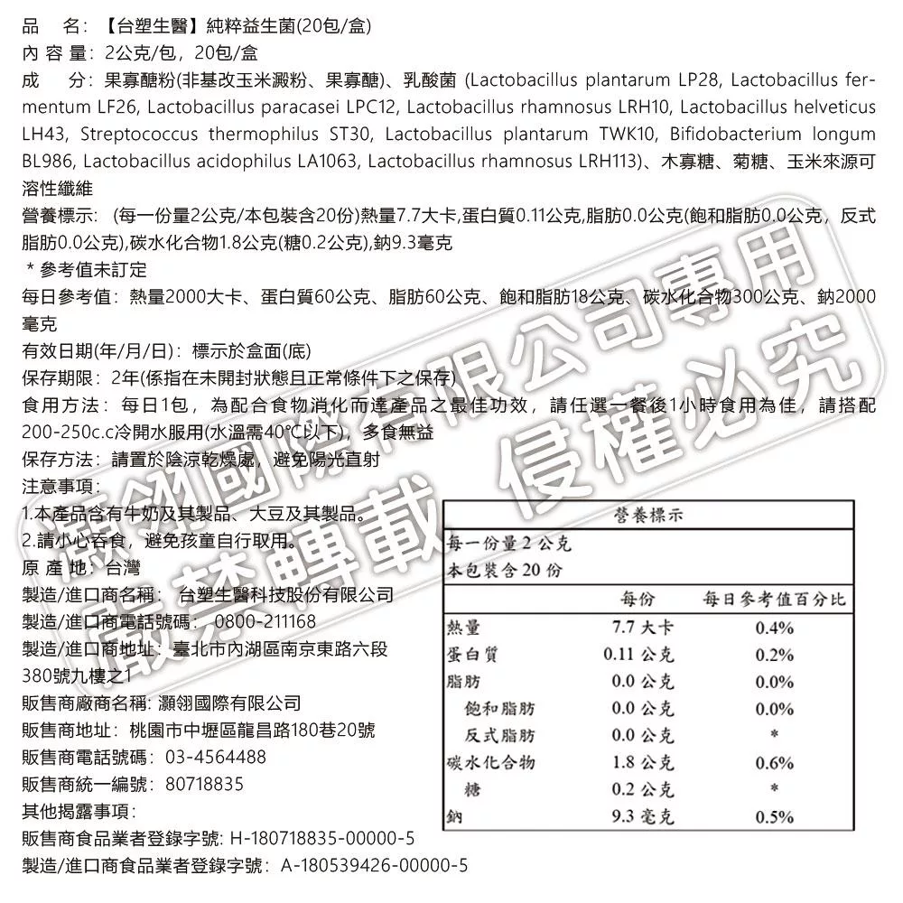 【台塑生醫】純粹益生菌(20包/盒) 2盒/組