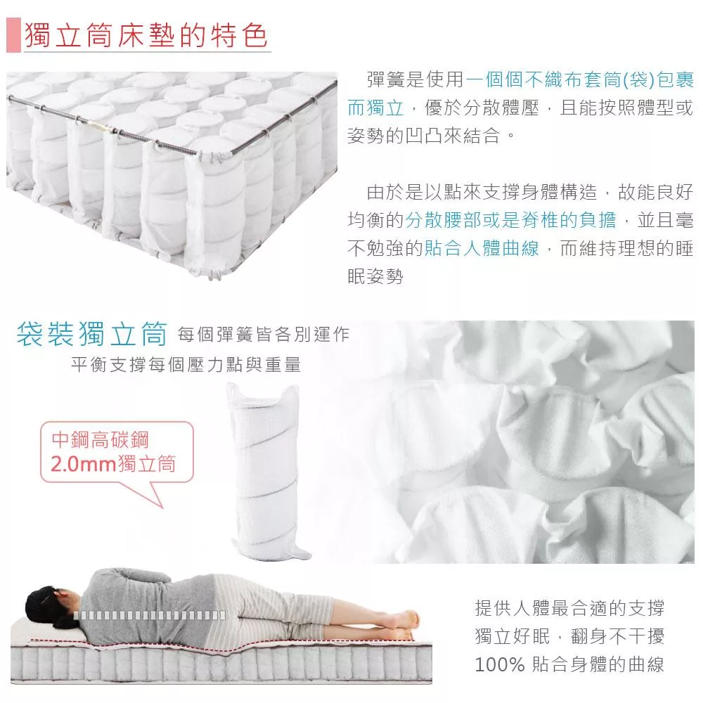 Homelike 喜家居銀離子蝶型護框獨立筒床墊-單人3.5尺(2537)