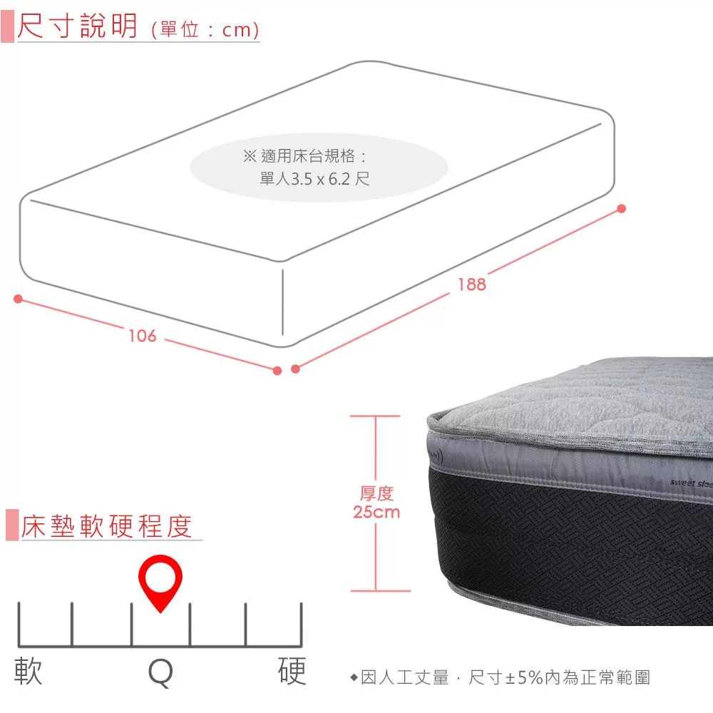 尺寸:寬 106 x 長 188 x 厚 25 公分