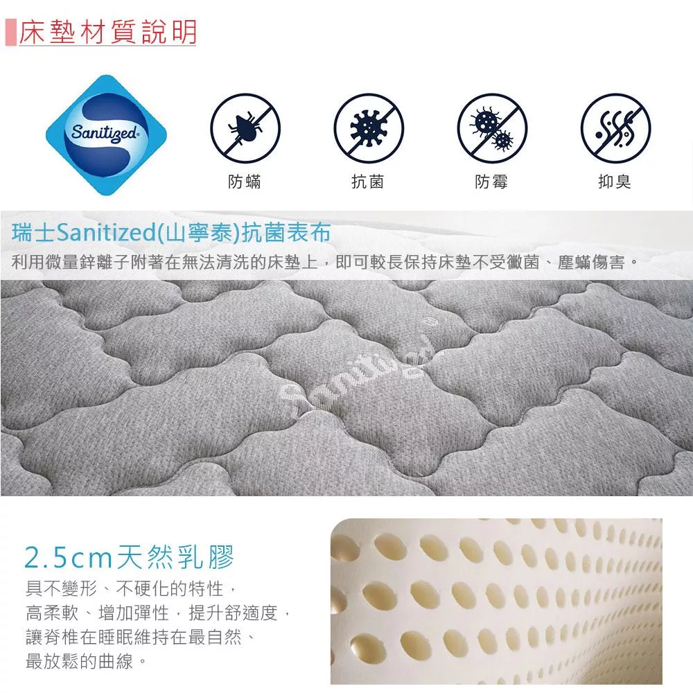 Homelike 喜家居山寧泰2.5cm乳膠三線獨立筒床墊-單人3.5尺(2538)