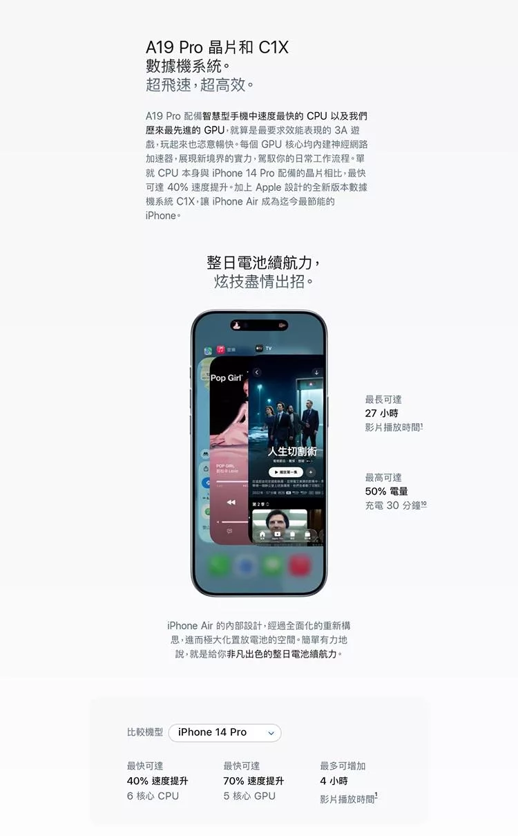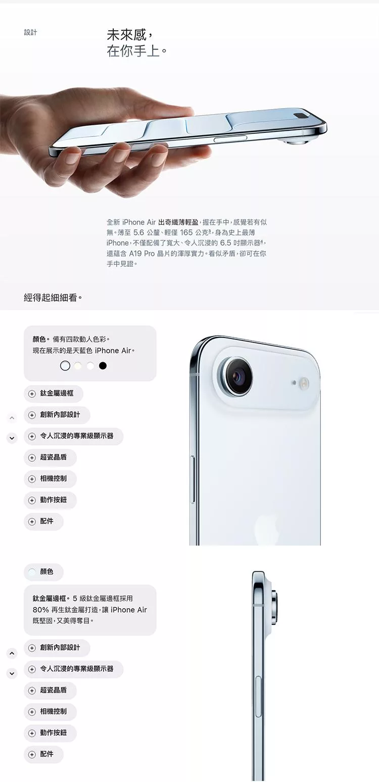 Apple iPhone Air 256G 防水5G薄型智慧機※送保貼+保護套※ 金