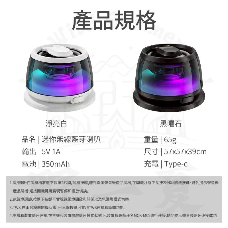 【MCK】MCK-M02 迷你磁吸無線藍牙喇叭 TWS雙喇叭連線免持通話 小巧便攜 環燈音響 -黑曜石