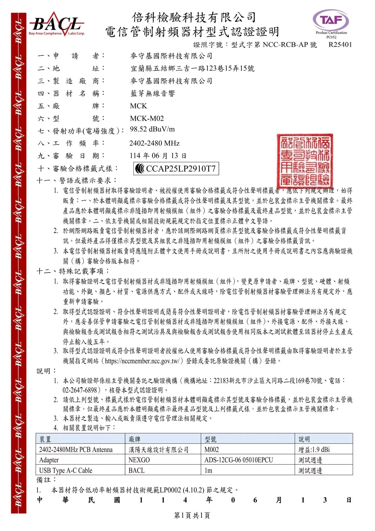 型式認證查詢連結:https://nccmember.ncc.gov.tw/Application/Fun/Fun016.aspx
