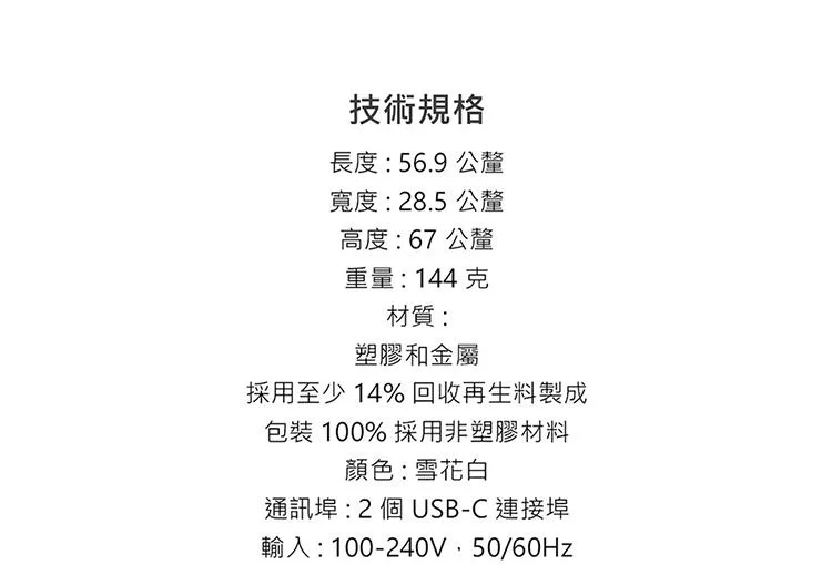 品名:Pixel Flex 67W USB-C 雙埠快速充電器