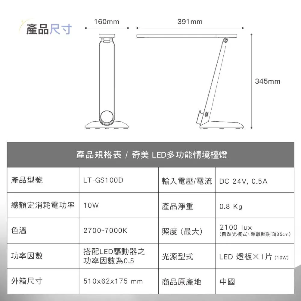 【CHIMEI奇美】時尚LED知視家護眼檯燈 LT-CT080D