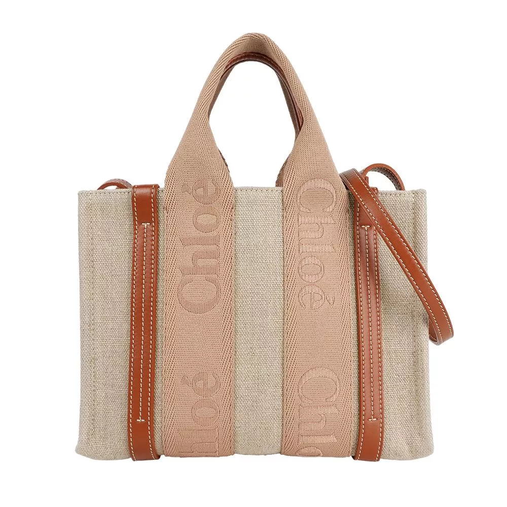 Chloe Woody tote bag 新款帆布兩用小號托特包- 灰褐色