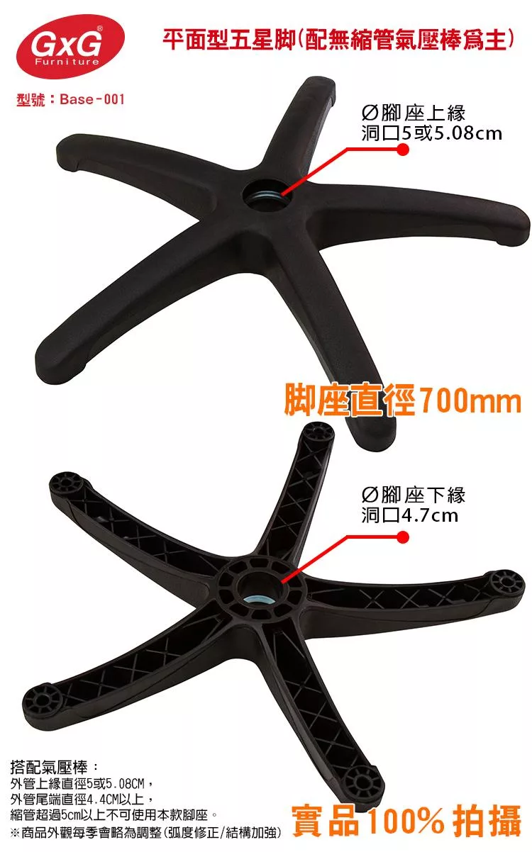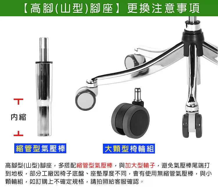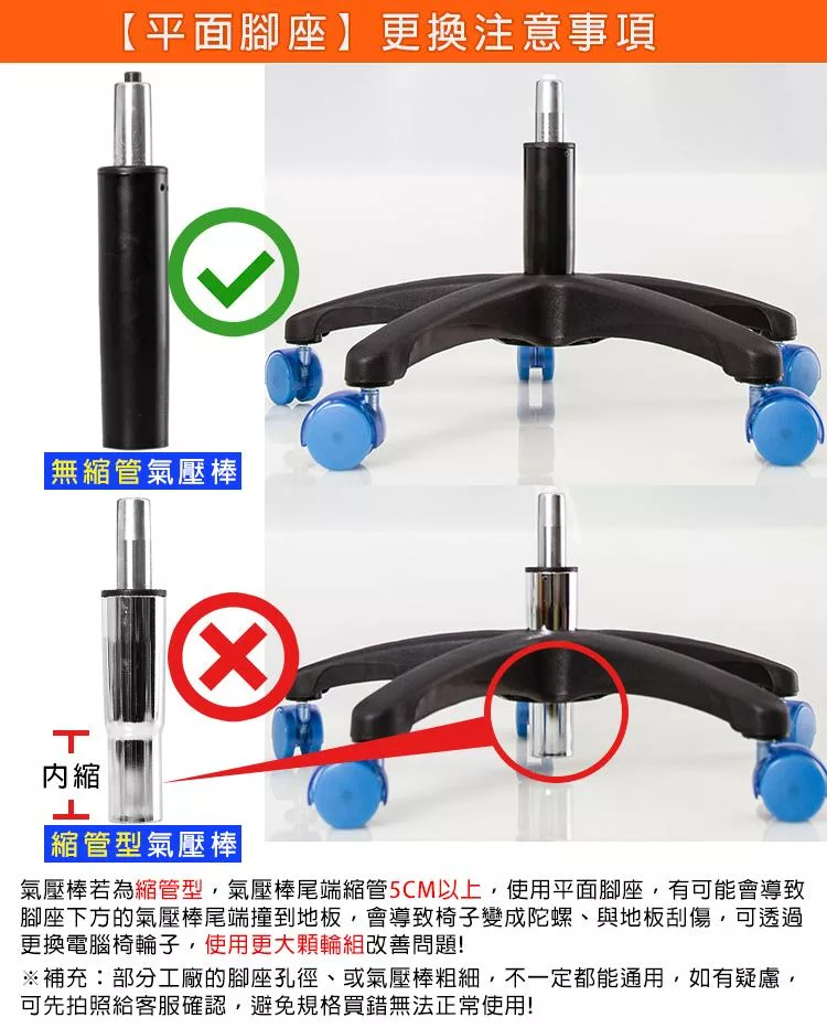 ※補充:部分工廠的腳座孔徑、或氣壓棒粗細,不一定都能通用,如有疑慮,可先拍照給客服確認,避免規格買錯無法正常使用!