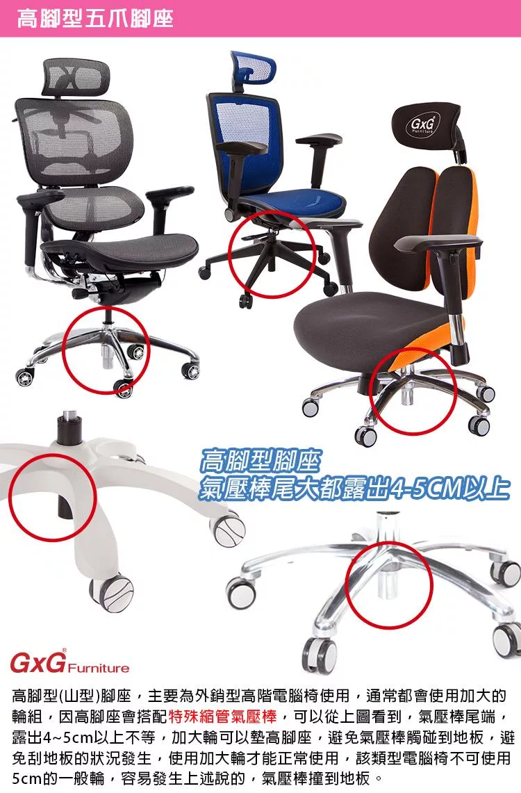 ※補充:更換腳座須注意氣壓棒長度、輪子大小,也必須了解使用桌面高度,許多人更換椅子腳座,改矮後,發現使用電腦時,還是要把椅子升高,要配合桌面高度,
