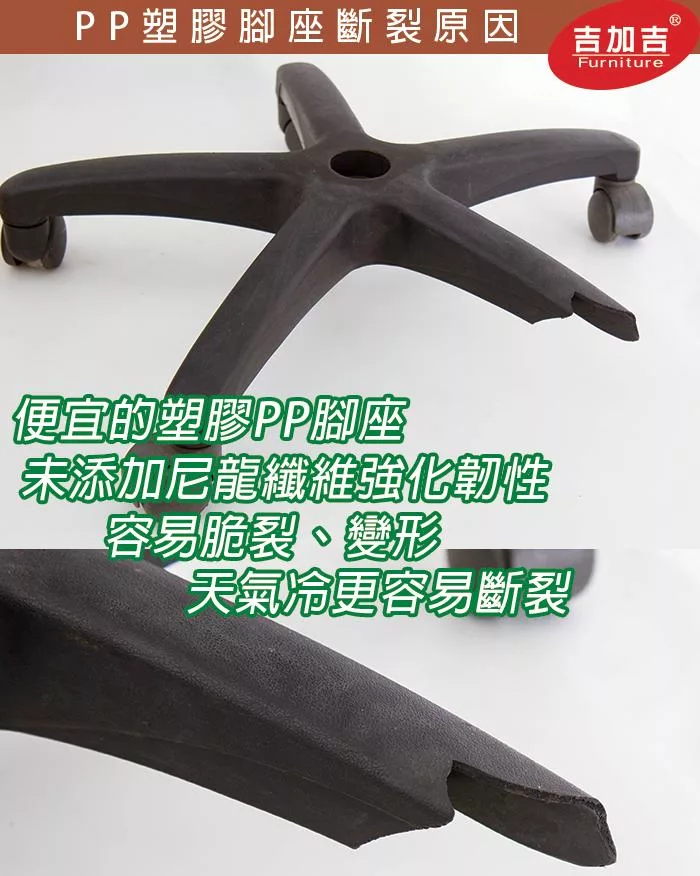 一般用料較薄的塑膠PP腳座,容易脆裂、斷開