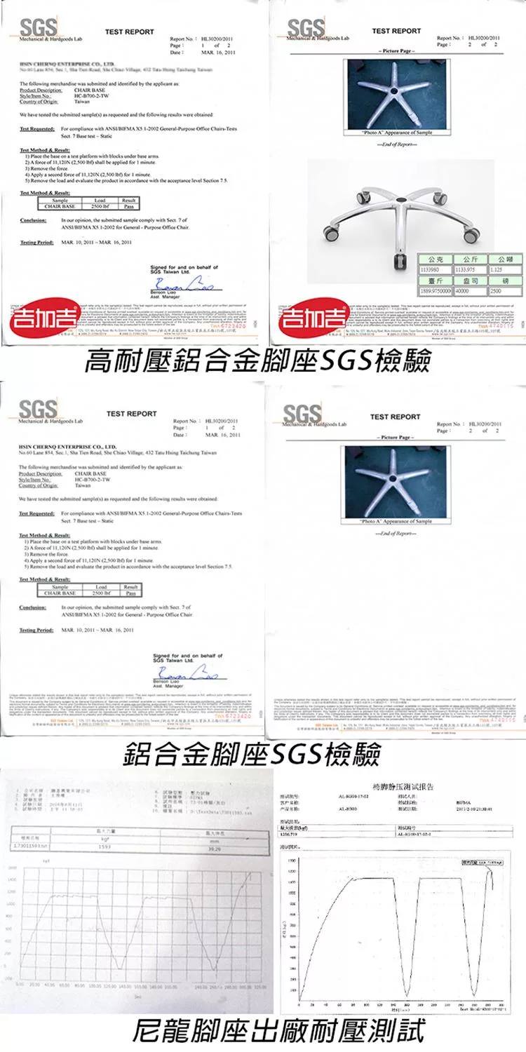 高腳型(山型)腳座,主要為外銷型高階電腦椅使用,通常都會使用加大的輪組,因高腳座會搭配特殊縮管氣壓棒,