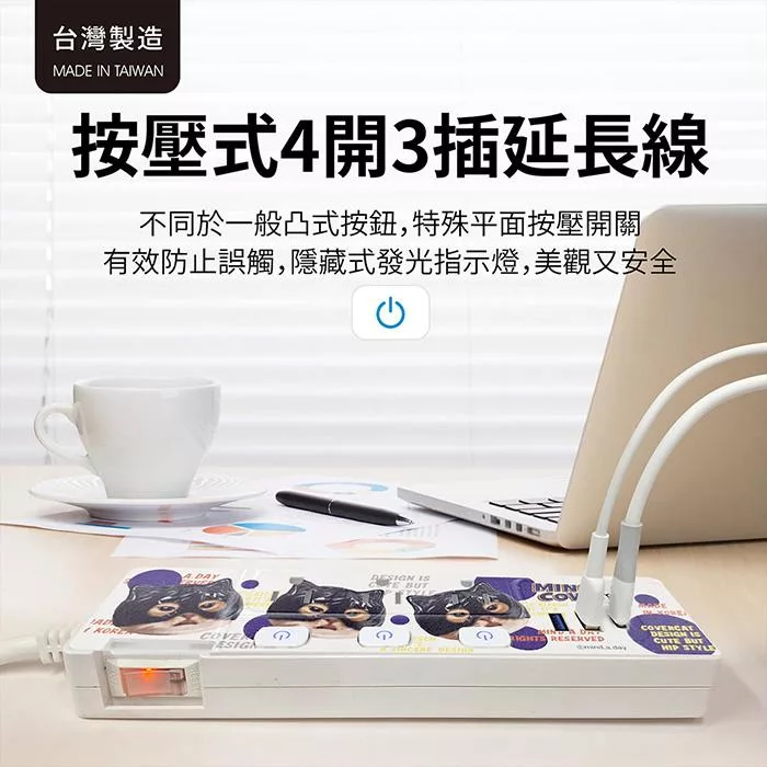 aibo 淨.極簡 3孔4插 USB延長線-1.8米