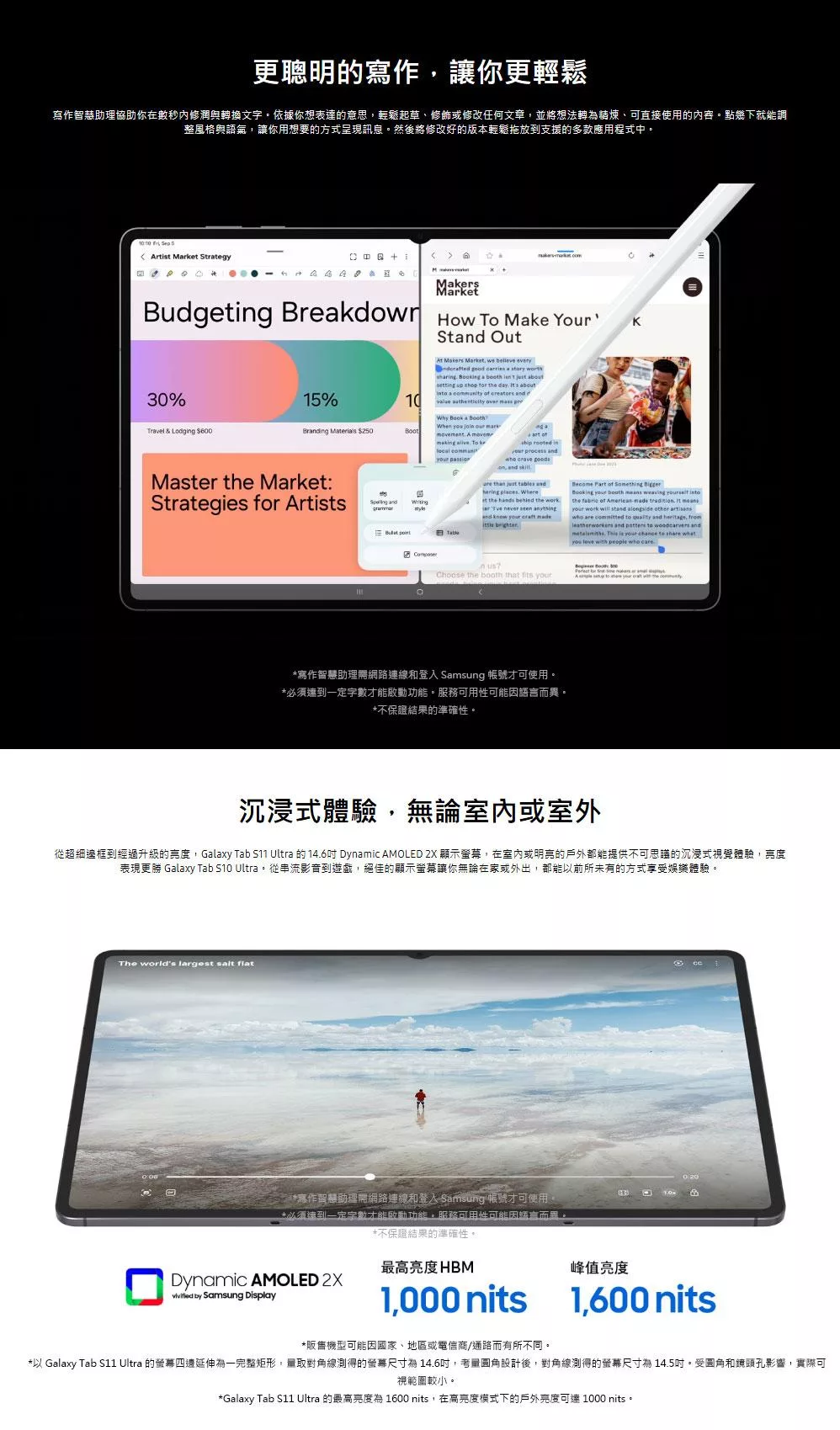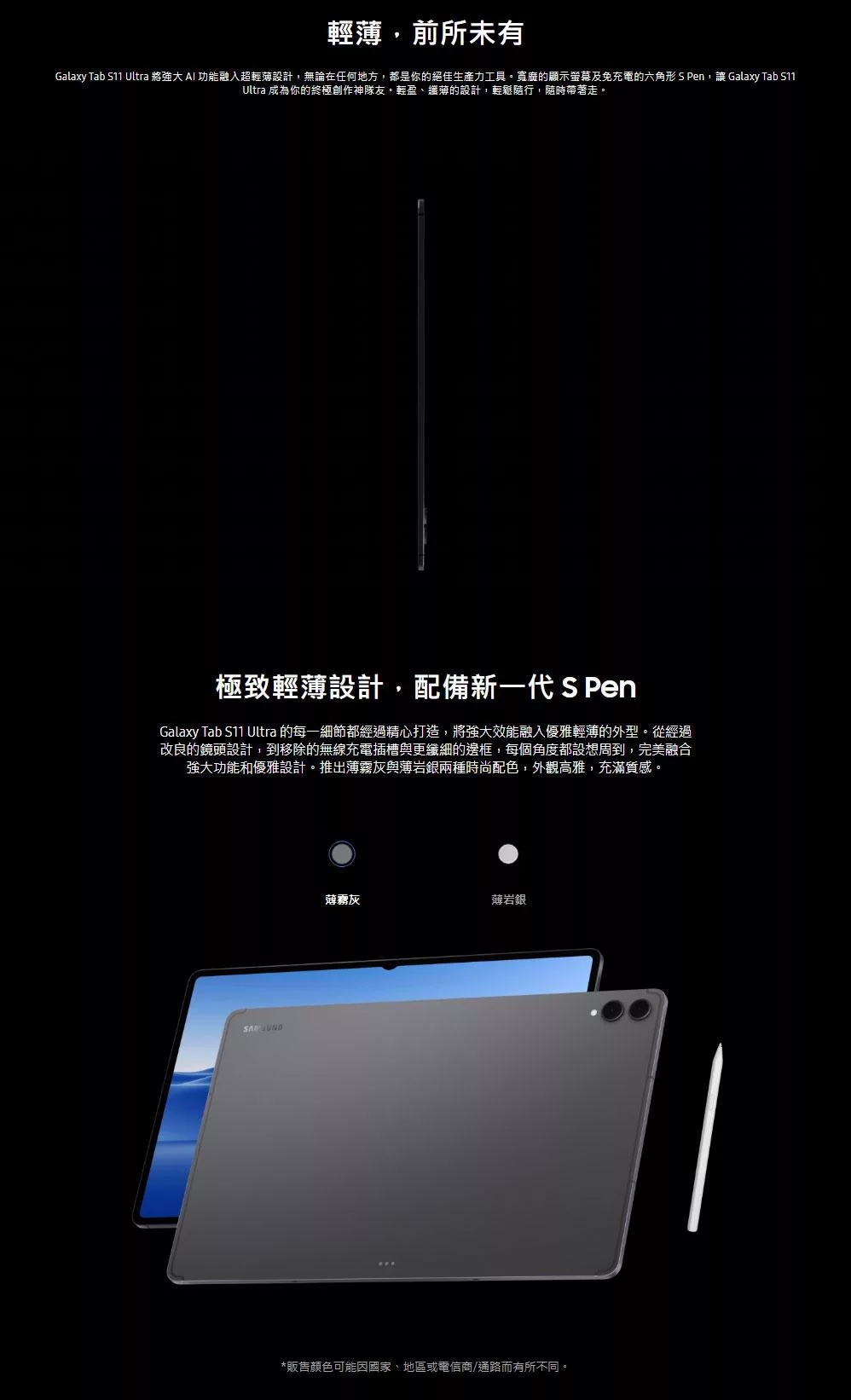 Samsung Galaxy Tab S11 Ultra WiFi SM-X930 14.6吋平板電腦 (12G/512GB) 薄岩銀